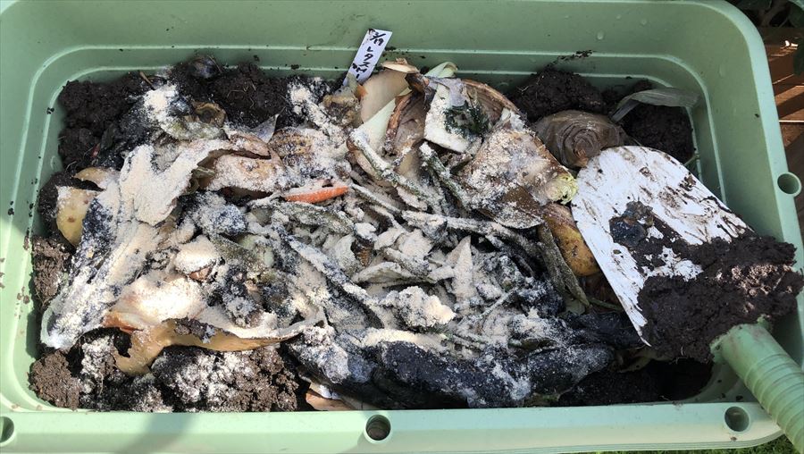 生ゴミを埋める際は、以下の手順で行います。 早く堆肥化させたいときは、生ゴミに米ぬかを全体にまぶします(4.)。