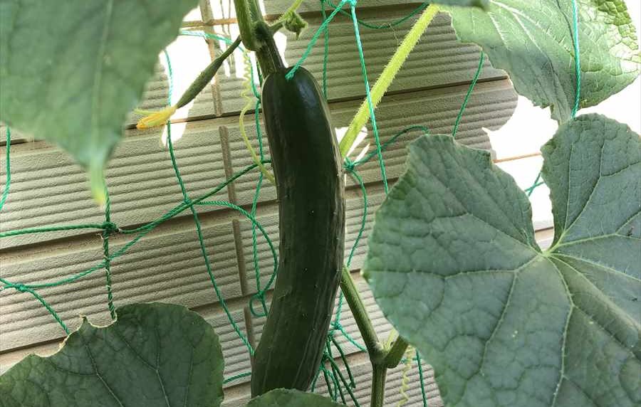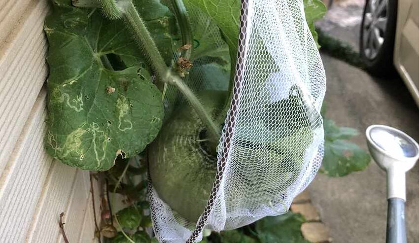 自宅の敷地の限られた一坪しか広さがないため、栽培に苦労したのが⑫カボチャと⑮メロンです。ツル性で地べたを這って成長しますが、一坪しか土地がなく他にも栽培しているため、栽培面積を確保するため、色々工夫しました。